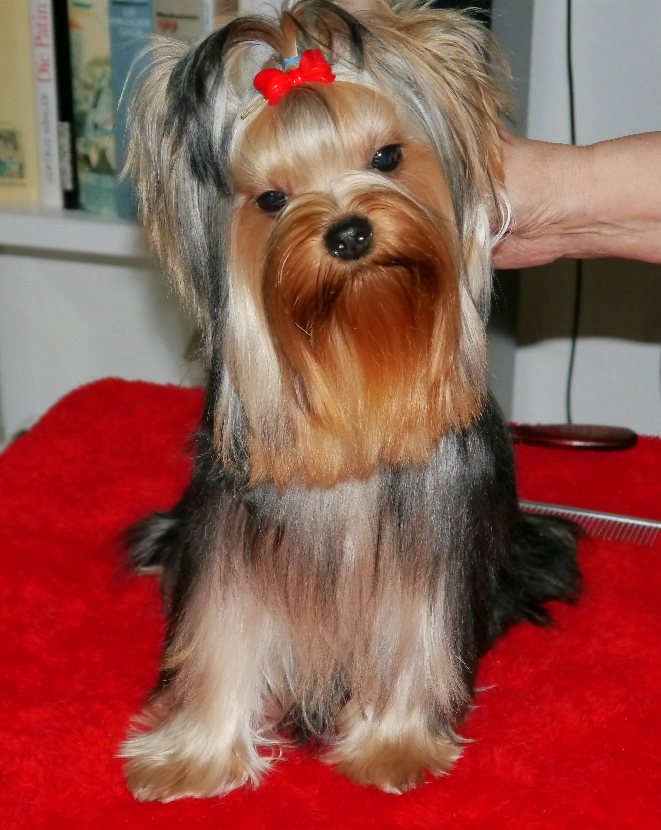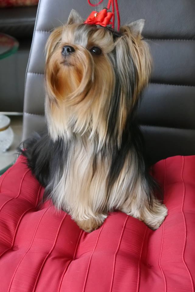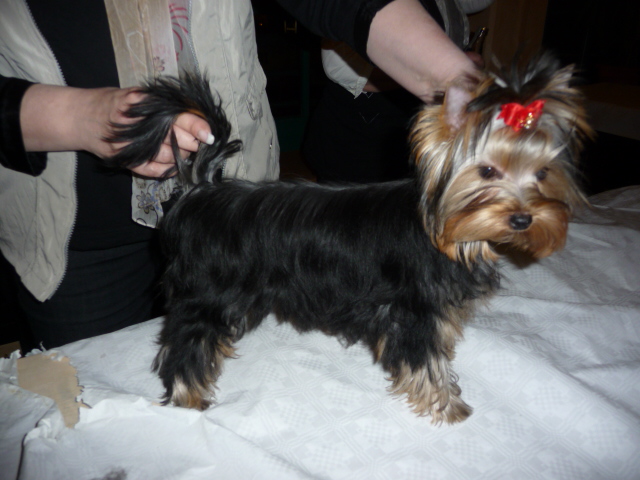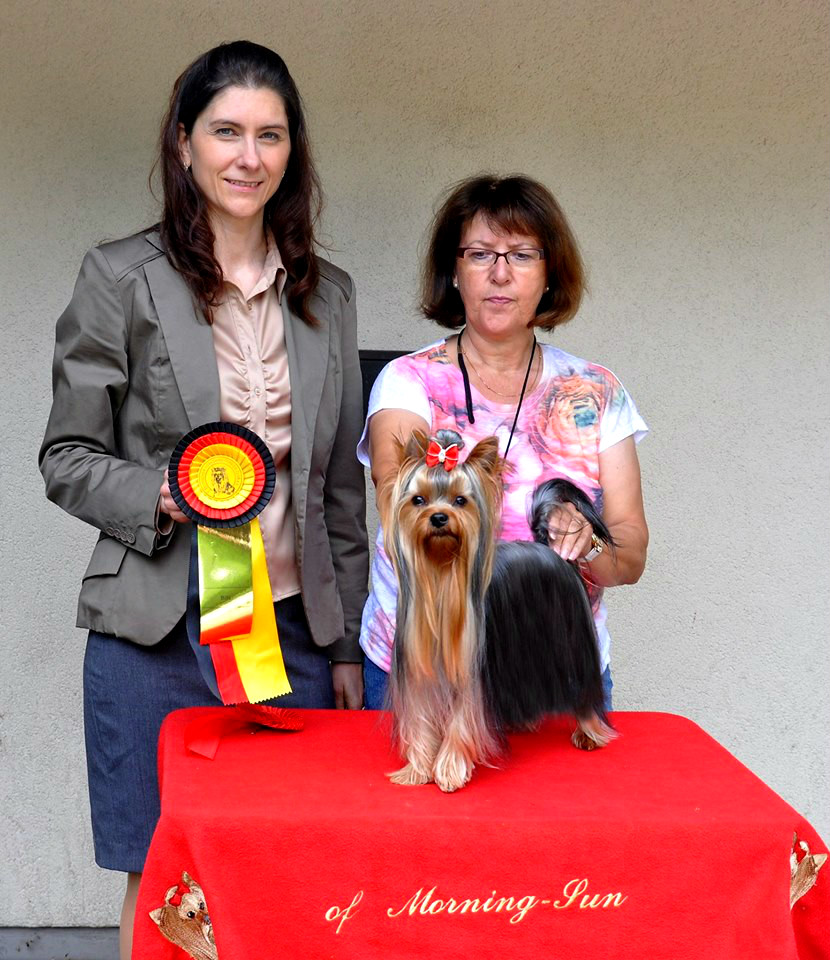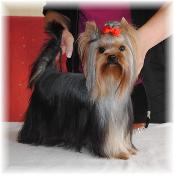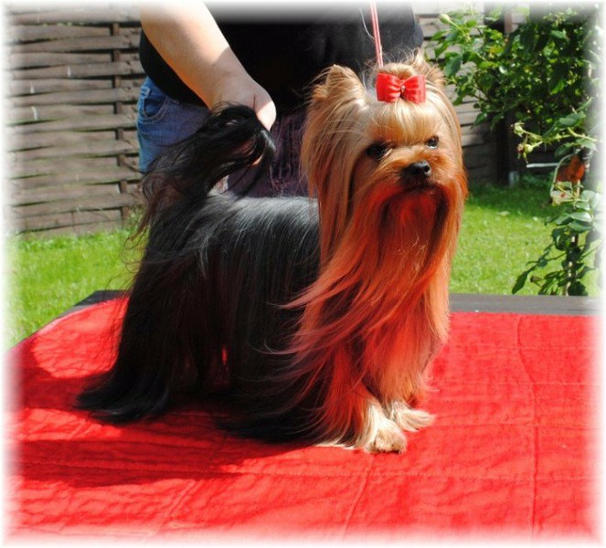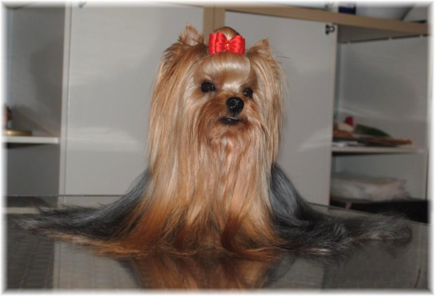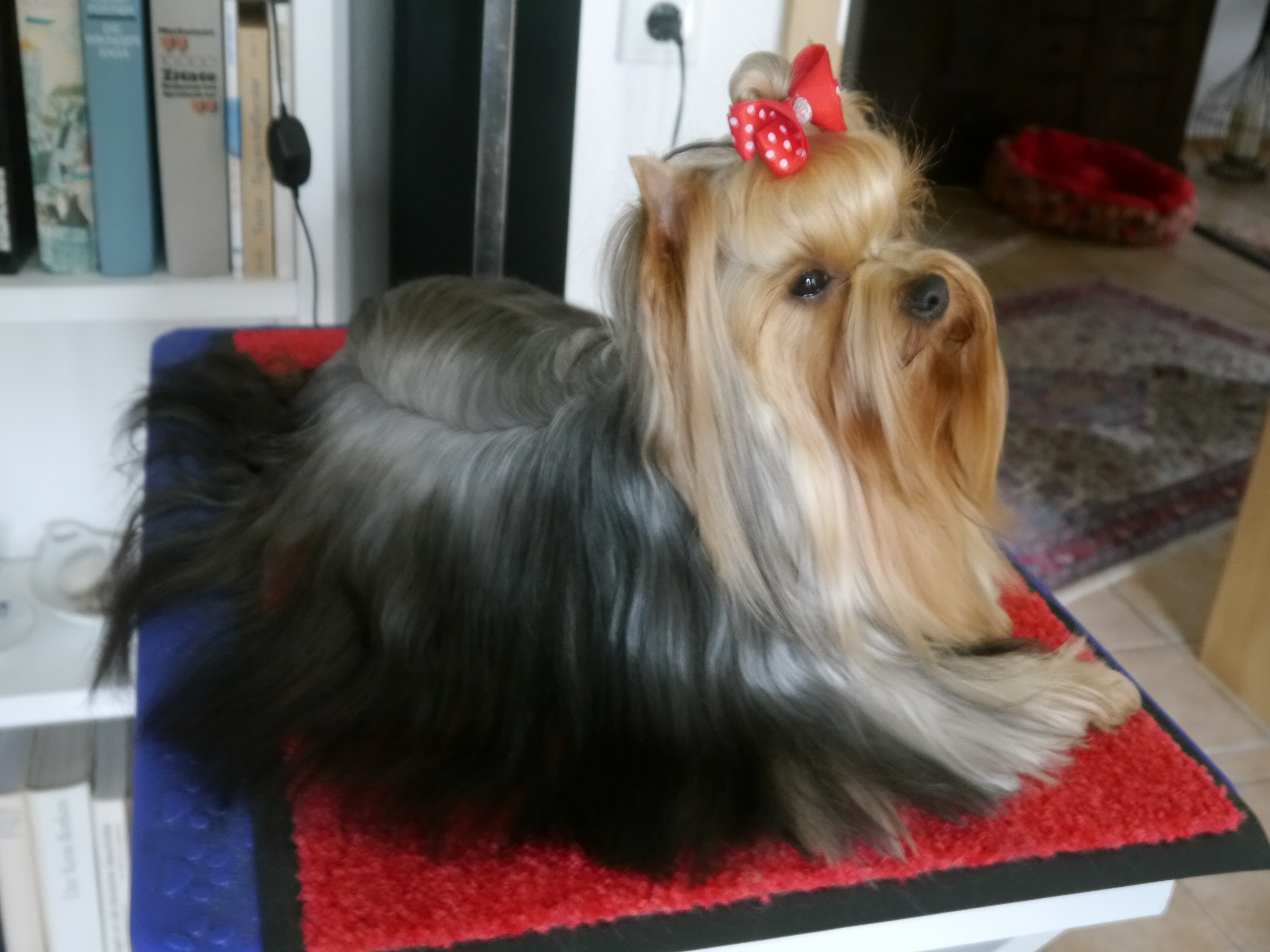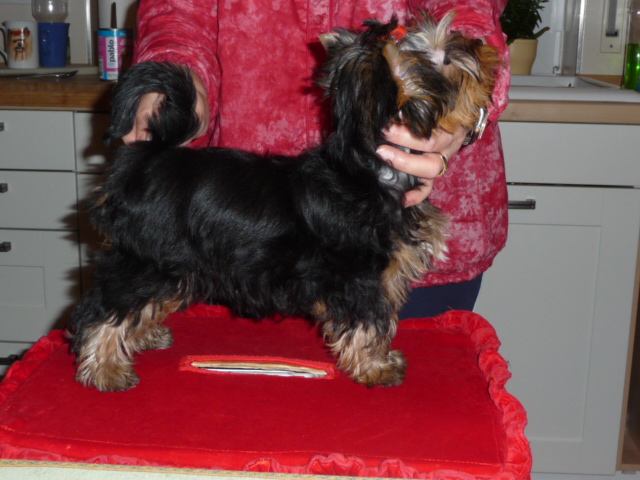 Wir hoffen, dass sie sich zu einem wunderschönen Yorkie mausert und uns auf Ausstellungen und später in der Zucht viel Freude bereiten wird.